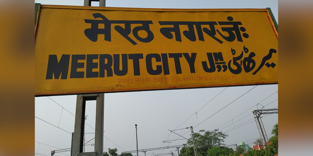 میرٹھ سٹی جنکشن ریلوے اسٹیشن کا سائن بورڈ۔(تصویر بہ شکریہ: روی دویدی/وکی میڈیا کامنز)