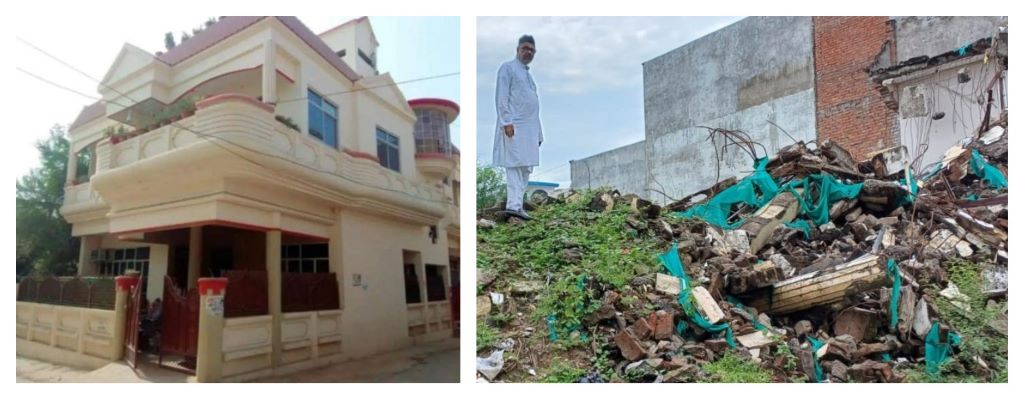 پروین فاطمہ کا گھر بلڈوزر کارروائی سے پہلے اور بعد میں۔