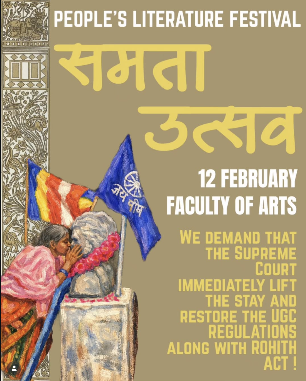 آئیسا کی جانب سے شیئر کیے گئے پوسٹر کے مطابق، پروگرام میں سپریم کورٹ سے یو جی سی قوانین پر عائد پابندی ہٹانے اور ’روہت ایکٹ‘نافذ کرنے کا مطالبہ بھی کیا گیا۔ انسٹاگرام پر شیئر کیے گئے پوسٹر کے کیپشن میں ‘یونیورسٹیوں میں ذات پات ختم کرو’ اور ‘سماجی انصاف زندہ باد’ جیسے نعرے بھی شامل تھے۔