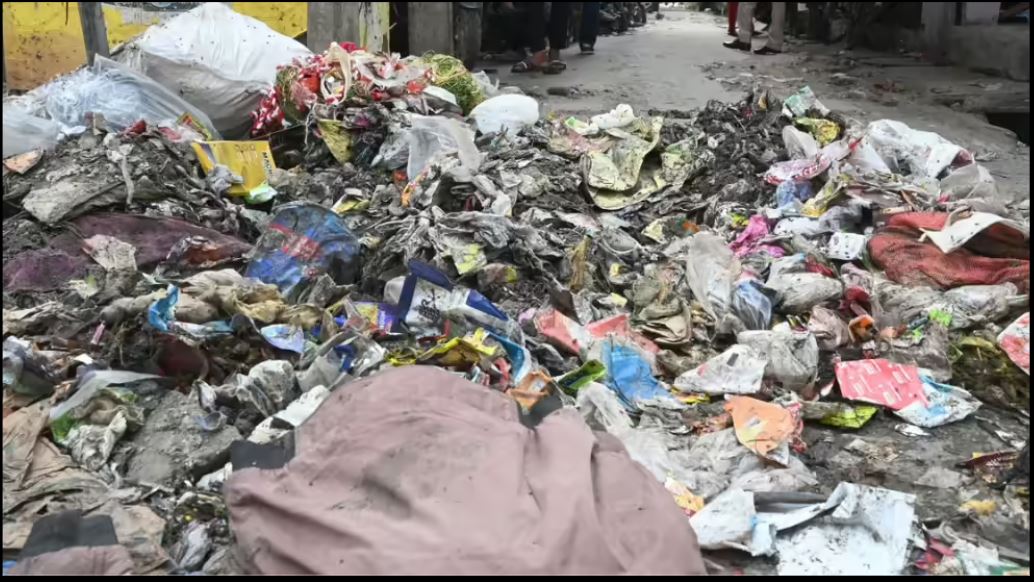 سنگم وہار میں سڑک کنارے پڑا کچرا۔